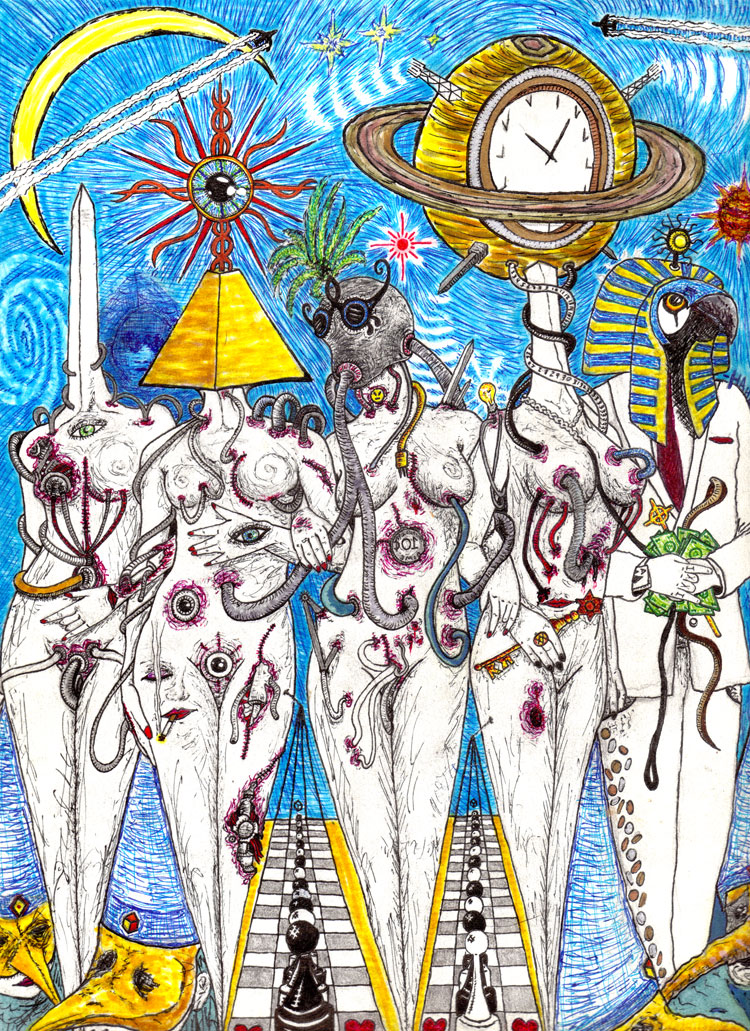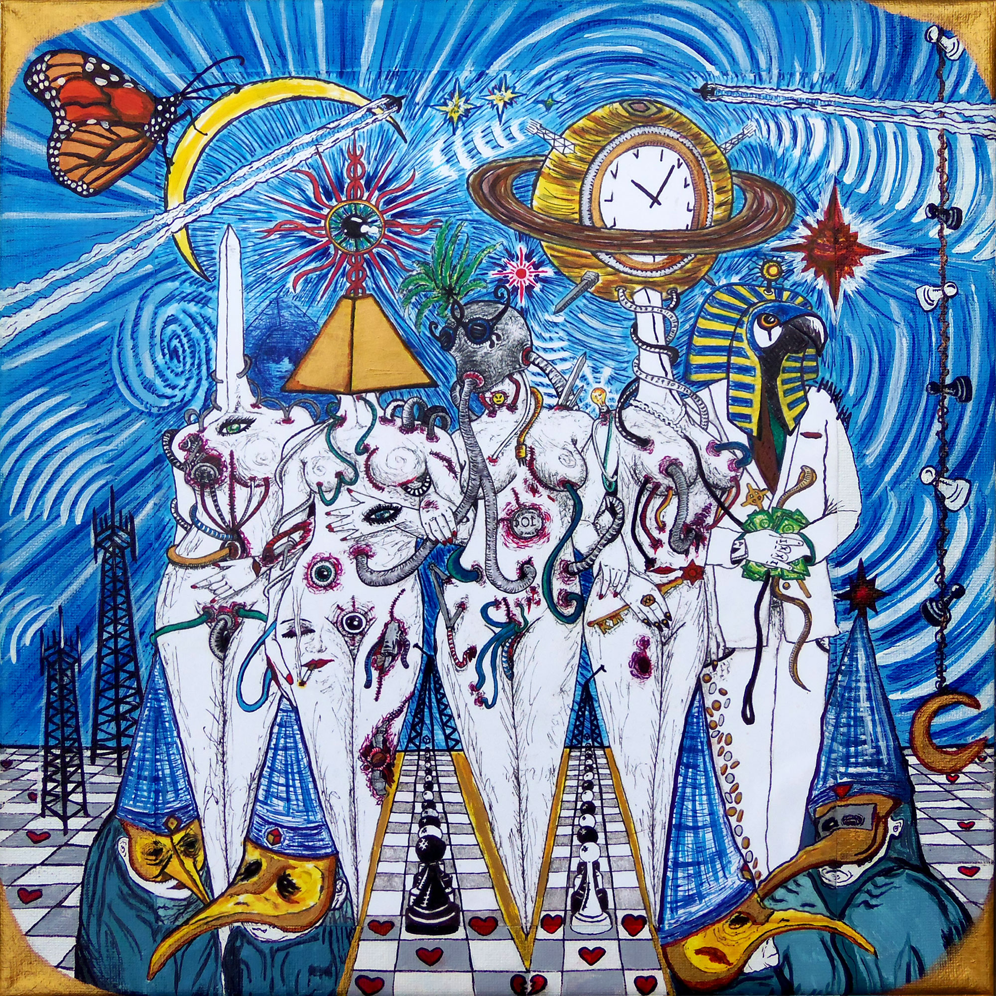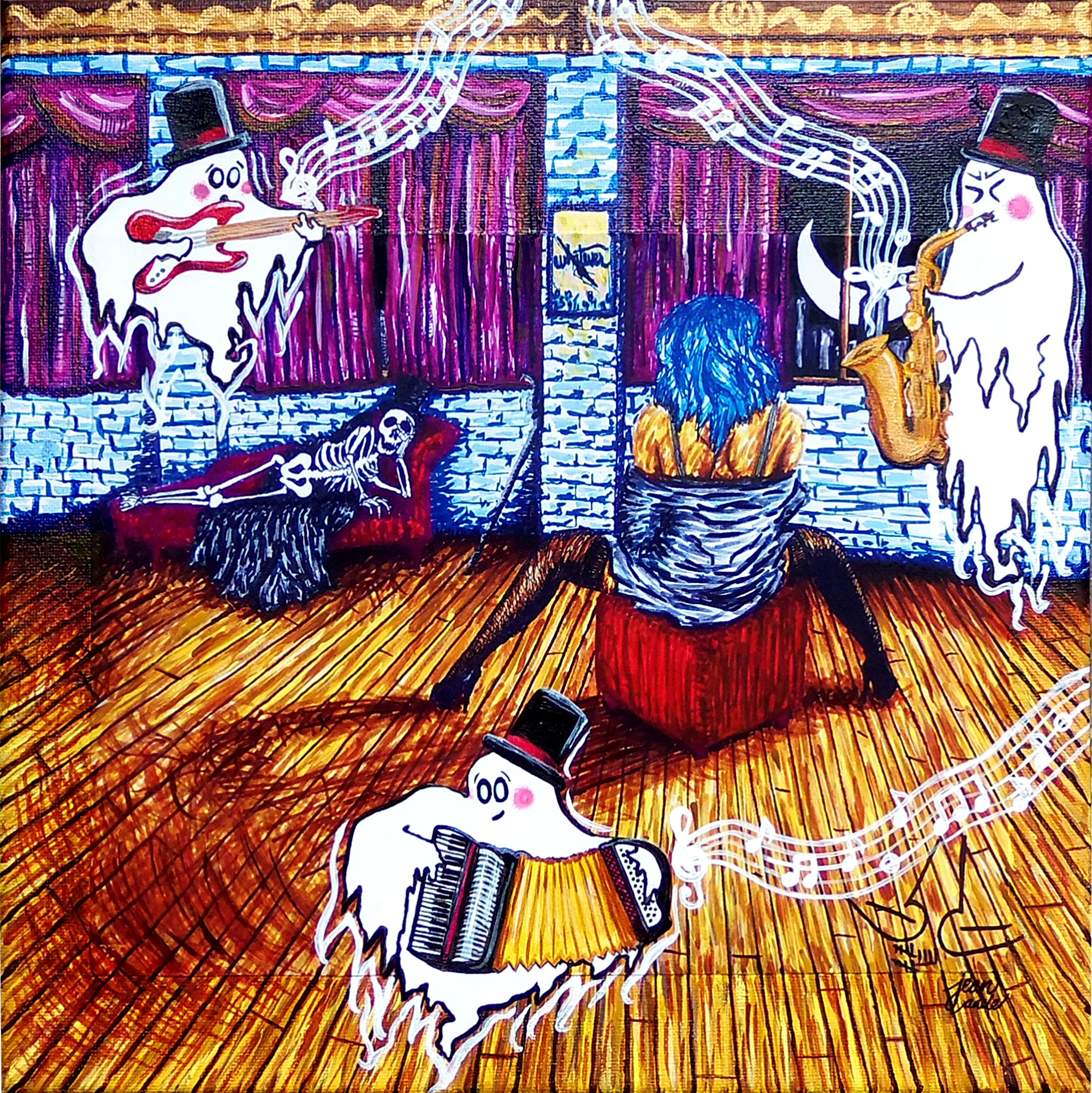 The following Outside the Border Series is a collaboration of prints by Brandon Douglass, applied to a canvas where Jean painted outside of the original work by Brandon... mixing his marker art style with her acrylic painting style: